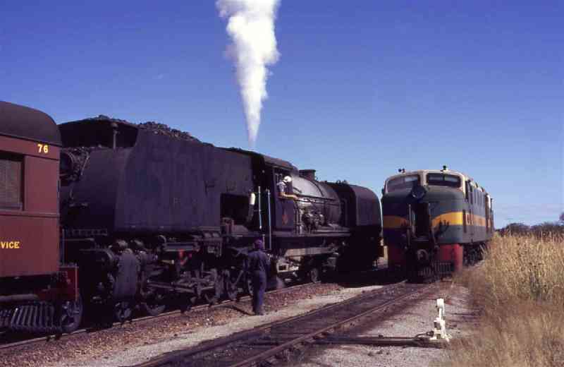 My last months before my National Service was due to begin were spent in the Diesel Shop (part of the Erecting Shop) where our diesel locomotives were repaired, serviced, and armoured-up against explosive devices placed on the tracks or a small arms ambush by the Gooks. Many of these attacks occurred, especially down the Rutenga/Beit Bridge way. The diesels were used in those areas where steam was not practical due to a lack of water for their ever thirsty boilers. From my recollections I do not recall any steam locos being attacked by the Gooks…..they seemed to take great delight in shooting/blowing up our diesels though…….maybe because there was a lot of nice smoke and flames generated by the fuel firing up.